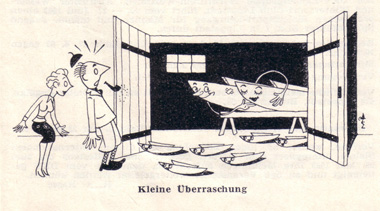 Ein Abenteurer mit großem Herzen 'Es ist so schön, wenn die Angst nachlässt!' - einer von Otto Birkes Lieblingssätzen. Man hörte ihn meist dann, wenn er wieder eines seiner Abenteuer erfolgreich bestanden hatte. Noch im hohen Alter versuchte sich der 1933 im Sudetenland geborene Wahlburghauser am Ballon Jumping, tat sich als Fechter hervor, setzte sich an den Steuerknüppel eines Düsenjets oder stürzte sich im Schlauchboot einen Skisprunghang hinunter......' (Nachruf 2005) ![]() Otto Birke war auch ein begeisterter und verwegener Bootfahrer der nicht nur für jede Gaudi sondern auch für Verrücktheiten wie Paddeln bei Schnee (man beachte die damalige Ausrüstung) zu haben war. Otto schrieb viele Berichte über das Paddeln und zeichnete gerne. ![]() Karikatur gezeichnet von Otto Birke Fotos: Sepp Schächner |
