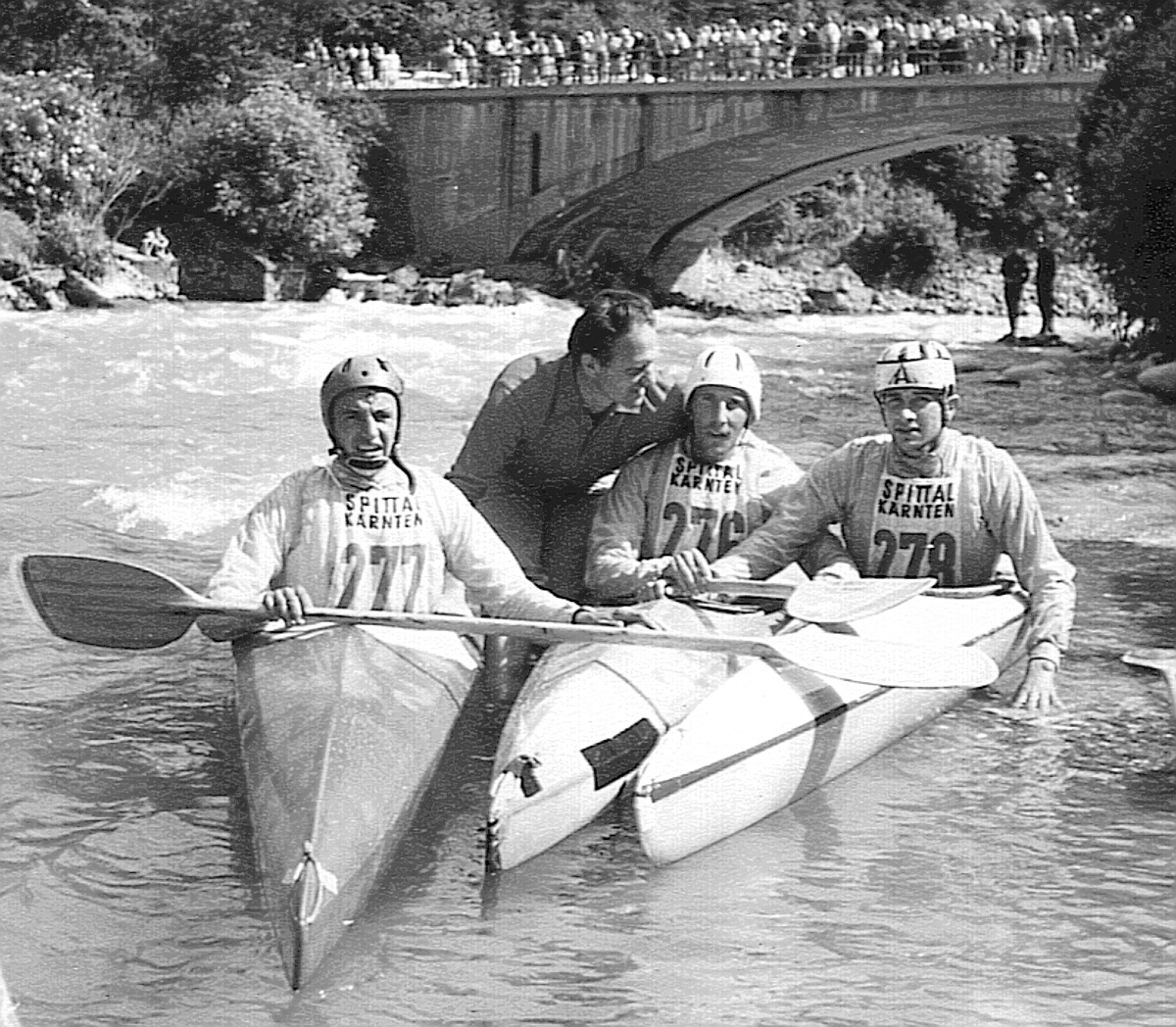 ![]() ![]() Toni Prijon sen. als Trainer auf der Lieser, 1970 |